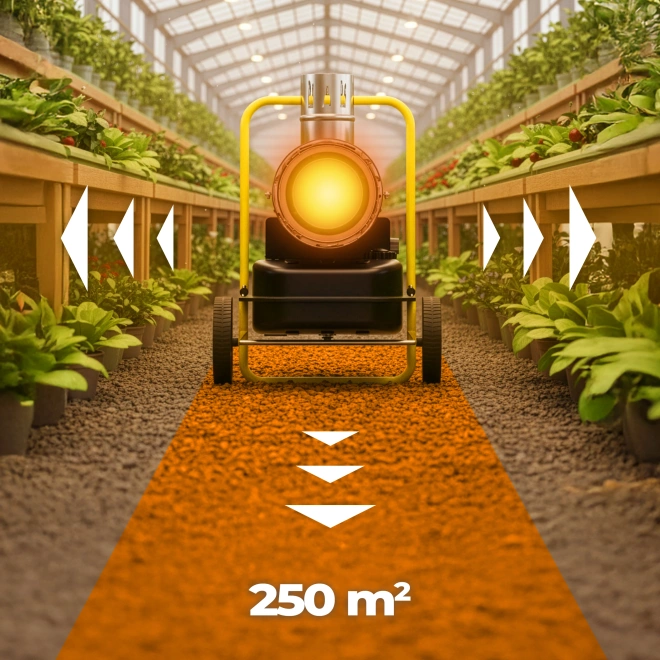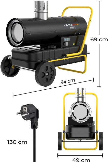 - Profesjonalne ogrzewanie hal i warsztatów. Moc 20 kW, spalanie 1,65 l/h, zbiornik 38 l, do 23 h pracy i odprowadzanie spalin na zewnątrz.
