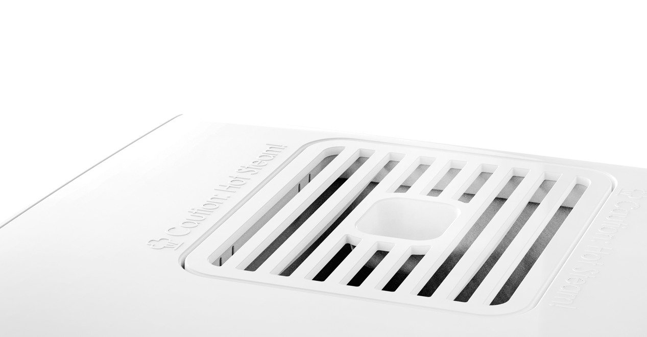 Specjalny system podgrzewania wody sprawia, że para jest sterylnie czysta. Jednocześnie konstrukcja wylotu pary sprawia, że wilgotne powietrze wydostające się na zewnątrz ma temperaturę przyjemną dla ciała i nie powoduje oparzeń.