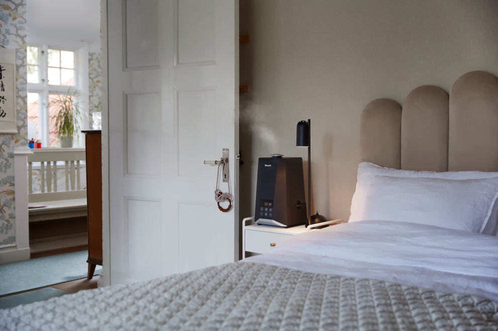 Nawilżone powietrze może pomóc w łagodzeniu chrapania i poprawić jakość snu, a także może pomóc w łagodzeniu objawów związanych z alergiami, astmą i przeziębieniem, takich jak katar, kaszel i suchość w gardle!