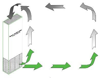 Oczyszczacz EAS1300 wykorzystuje innowacyjną technikę przemieszczania powietrza. Z dolnej części urządzenia wydmuchiwane jest czyste powietrze. Wytwarza się wówczas przestrzeń z powietrzem wolnym od zanieczyszczeń a powietrze ze smogiem/dymem tytoniowym jest wypychane do góry pod sufit. Następnie zanieczyszczone powietrze jest zasysane do urządzenia i poddawane oczyszczeniu.
