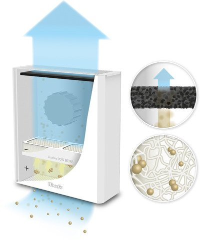 - Aktywny filtr ION HEPA. Dzięki opatentowanej technice filtry Active ION HEPA mogą być znacznie mniej gęste niż tradycyjne filtry HEPA i nadal osiągać te same (lub wyższe) poziomy filtracji. Jeden filtr Active ION HEPA składa się z wielu warstw plisowanych mediów filtracyjnych. Zapewnia to wyjątkową wydajność filtracji.