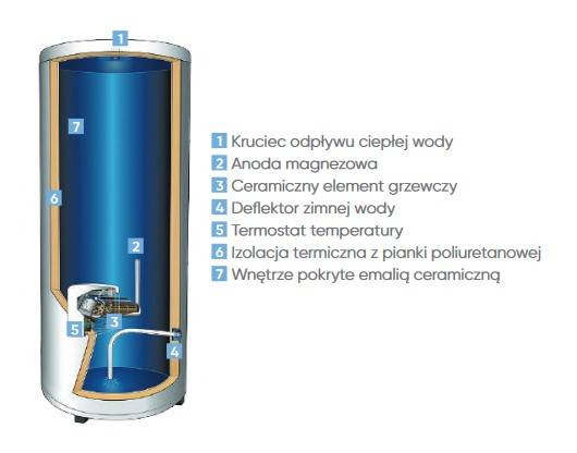 Urządzenie wyposażone jest w specjalny system wspomagający zabezpieczenie antykorozyjne wnętrza ogrzewacza, zawór bezpieczeństwa oraz mufkę dielektryczną./span>
