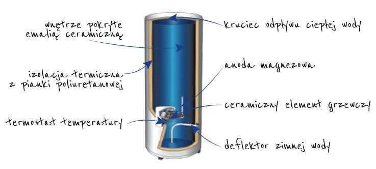 Jego parametry techniczne i duża pojemność gwarantują dużą wydajność oraz akumulację ciepłej wody w domu, biurze czy małej firmie.