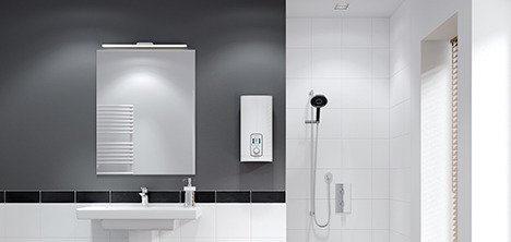 Ciśnieniowy, do zaopatrywania w wodę kilku punktów poboru. Bezstopniowy dobór temperatury ciepłej wody wypływającej z urządzenia. Elektroniczna regulacja z zastosowaniem zaworu napędzanego silnikiem zapewnia automatyczne dopasowanie mocy grzewczej i wielkości strumienia przepływu. Tym samym gwarantuje utrzymanie żądanej temperatury wody na stałym poziomie, z dokładnością do 0,5°C. System grzejny z odkrytą grzałką nadaje się zarówno do wody o dużej zawartości wapnia, jak i do wody o małej zawartości wapnia. Zakres stosowania patrz dane techniczne. Elektronicznie sterowany zawór ograniczający strumień przepływu wody. Przystosowany do współpracy z armaturami ciśnieniowymi. Wyposażony jest w gwintowane króćce do podtynkowego / natynkowego podłączenia wody. Trójdrożny kulowy zawór odcinający. Przystosowany do współpracy z armaturami MEKD oraz MEBD produkcji Stiebel Eltron.