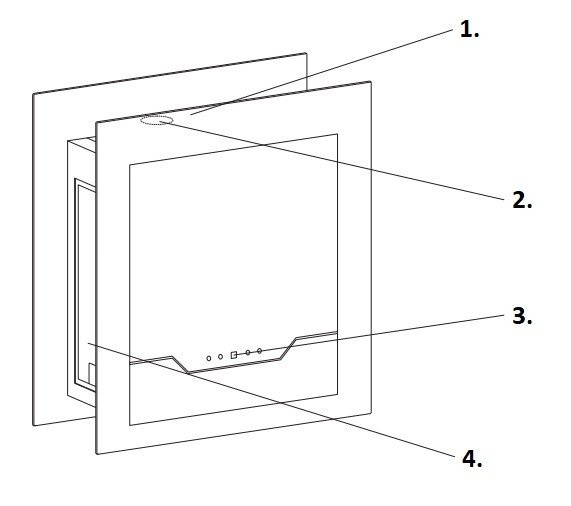 3. Panel sterowania (przycski: zasilania, prędkości wentylatora, lampa oraz timer).