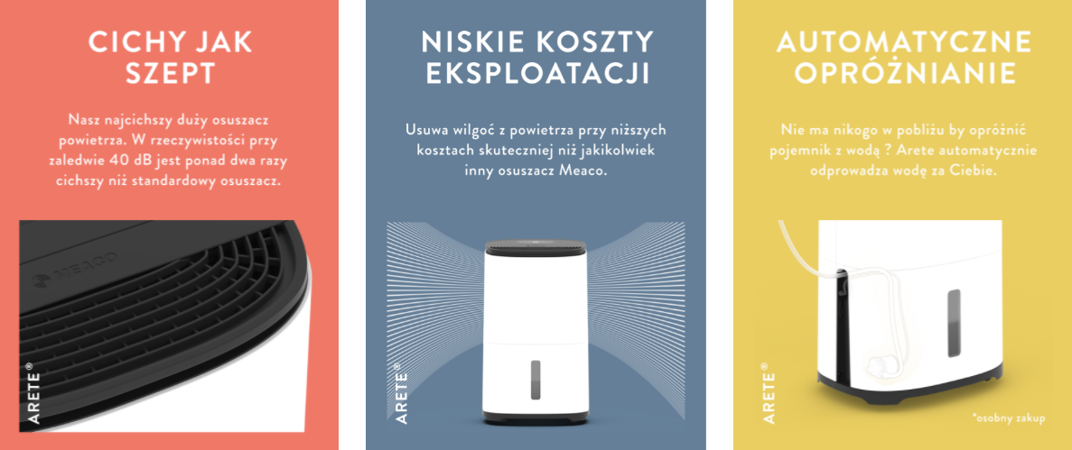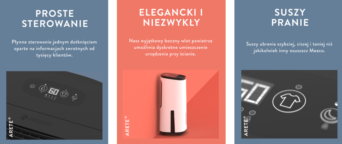 Brytyjska firma Meaco produkuje nowoczesne osuszacze powietrza z myślą ograniczenia kosztów jego użytkowania oraz żywotności. Urządzenia zostały poddane rygorystycznym testom przy zastosowaniu najbardziej aktualnych norm i zajęła najwyższe miejsce w rezultatach. Linia osuszaczy Meaco wyznacza standardy wśród domowych osuszaczy.