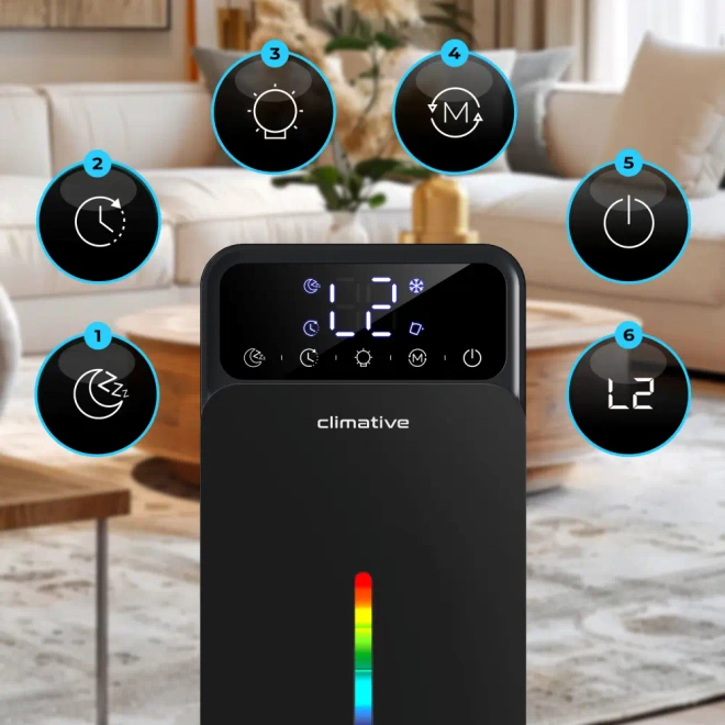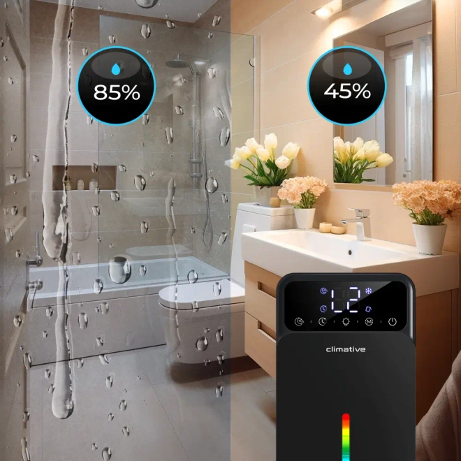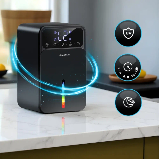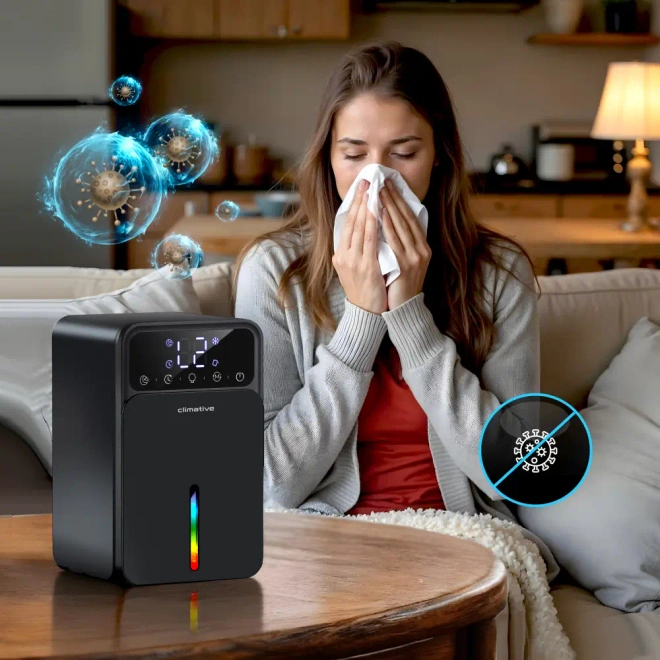 Pochłaniacz wilgoci Climative DH-035 Luxe UV skutecznie dba o jakość powietrza, eliminując szkodliwe mikroorganizmy – co ma szczególne znaczenie dla osób zmagających się z alergiami i dolegliwościami układu oddechowego. Dzięki wbudowanej lampie UV neutralizuje nieprzyjemne zapachy wywołane przez pleśń i bakterie, a jednocześnie zmniejsza ryzyko infekcji oraz reakcji alergicznych poprzez efektywną dezynfekcję powietrza. Dodatkowo urządzenie chroni samo siebie – technologia UV zapobiega rozwojowi drobnoustrojów wewnątrz osuszacza, co przekłada się na dłuższą żywotność sprzętu i rzadszą potrzebę konserwacji.