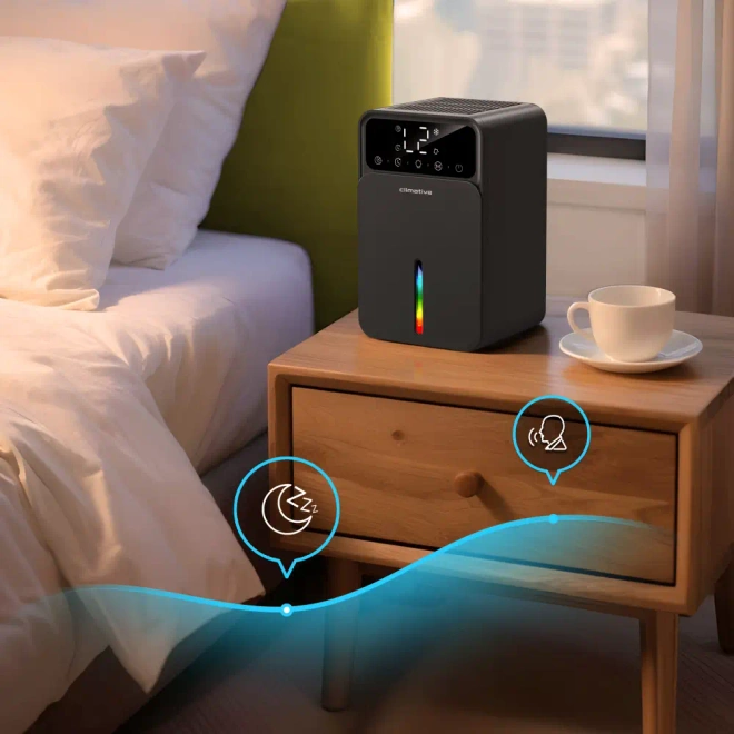 Jedną z największych zalet osuszacza Climative Luxe DH-035 UV jest jego bardzo cicha praca, nawet przy maksymalnej prędkości wentylatora. Dzięki trybowi nocnemu urządzenie może działać podczas snu, nie zakłócając odpoczynku. Bez obaw możesz ustawić je w sypialni – pozostanie niemal niesłyszalne, co docenią zwłaszcza osoby o lekkim śnie.