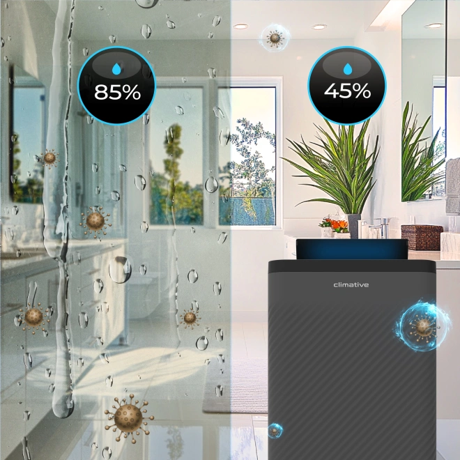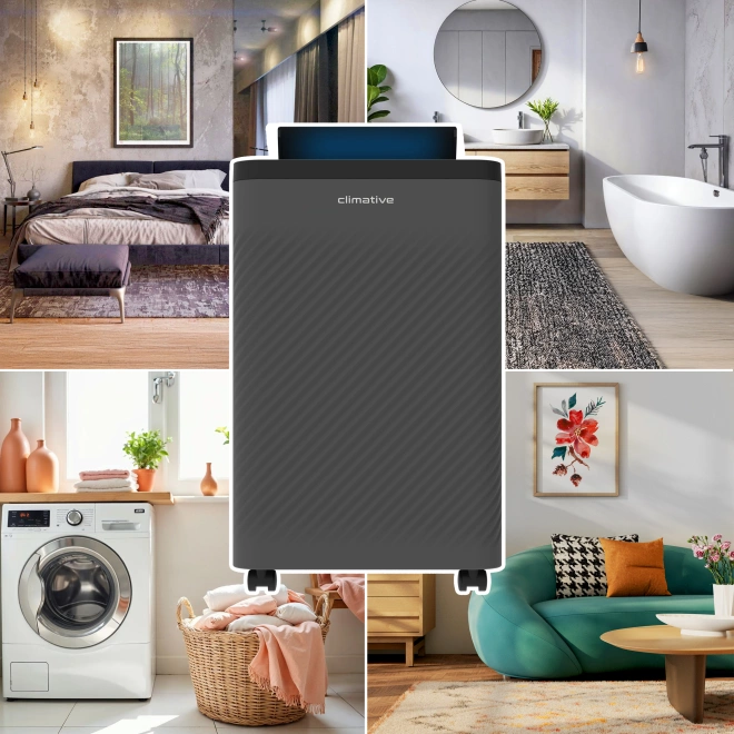 - Climative Nexi ION UV 12 l to kompaktowy osuszacz i oczyszczacz powietrza 2w1 do pomieszczeń do 20 m². Wydajność 12 l/24 h, filtr HEPA H10 z węglem aktywnym, jonizator i lampa UV redukują wilgoć, kurz, alergeny, zapachy i zarodniki pleśni.