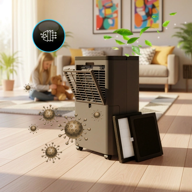 Chcesz, aby powietrze w Twoim domu było nie tylko odpowiednio osuszone, ale również czyste i wolne od zanieczyszczeń? Nexi ION UV dba o pełną ochronę jakości powietrza – zintegrowana kaseta filtracyjna łączy filtr HEPA H10 oraz filtr z węglem aktywnym, zapewniając świeże, zdrowe i przyjemne środowisko każdego dnia.