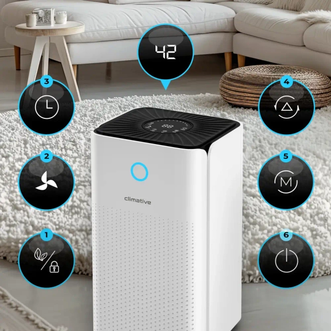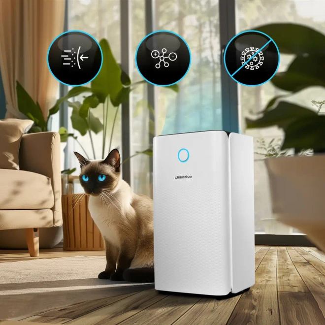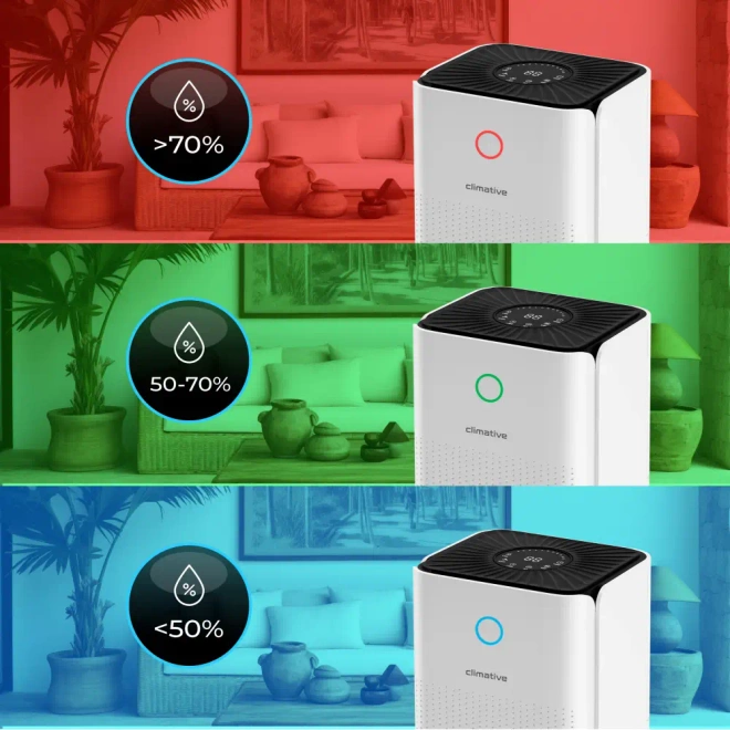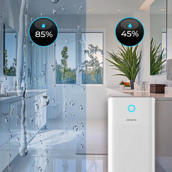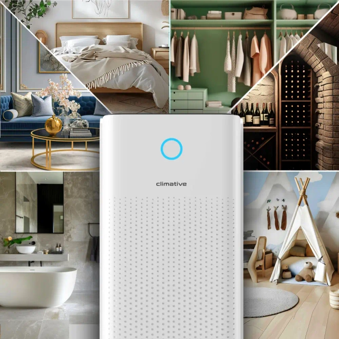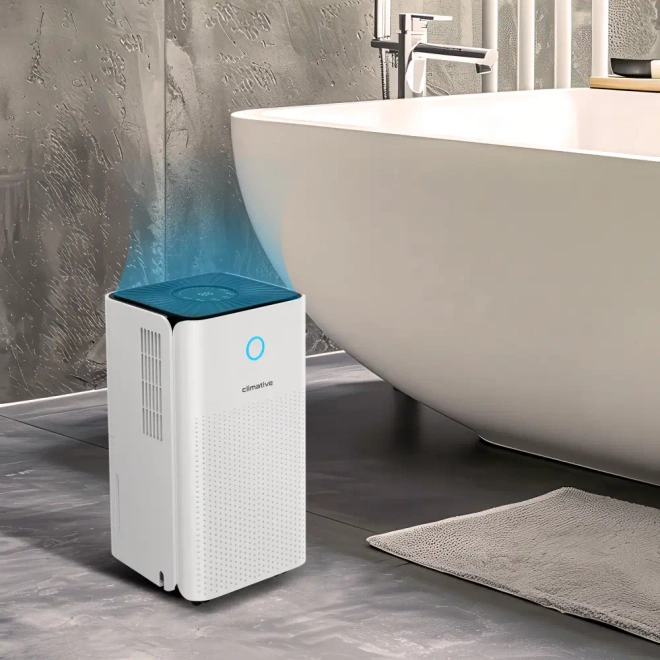 Climative DH-12S Wave ION to osuszacz powietrza, który dzięki technologii jonizacji nie tylko redukuje wilgoć, ale również poprawia jakość powietrza, eliminując alergeny, bakterie i zanieczyszczenia.Generowane jony ujemne pomagają utrzymać czystość i higienę w pomieszczeniu, co korzystnie wpływa na zdrowie i samopoczucie. Urządzenie zmniejsza ryzyko rozwoju pleśni i bakterii, co jest szczególnie ważne w wilgotnych miejscach, takich jak łazienki i piwnice.