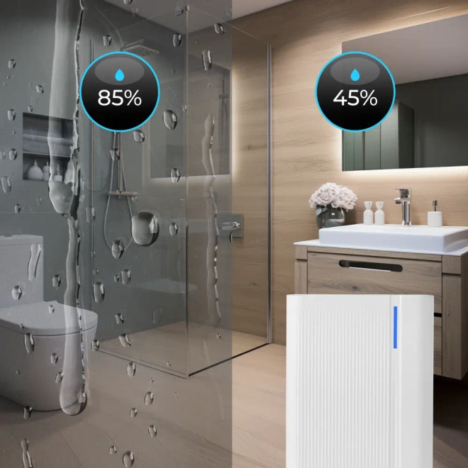 Dzięki temu możesz korzystać z osuszacza bez przerw – idealne rozwiązanie do pomieszczeń o podwyższonej wilgotności, takich jak łazienka, piwnica czy pralnia.
