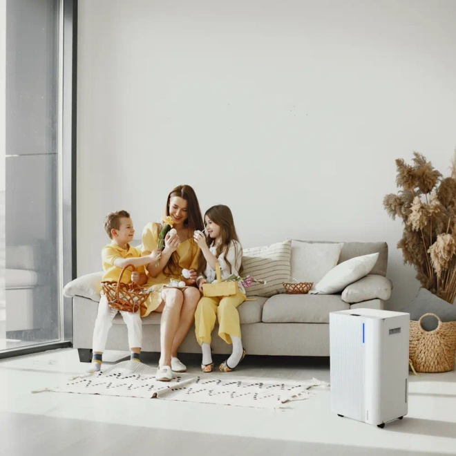 Oddychaj swobodnie w centrum domowego życia. Wydajność do 20 litrów na dobę pozwala utrzymać optymalną wilgotność nawet w dużych pomieszczeniach do 40 m².