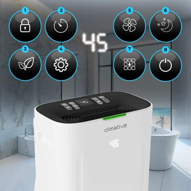 - Osuszacz powietrza z funkcją UV Climative DH-20S UV Silent oferuje wydajność 20L/24h, cichą pracę do 39 dB, a także zdalne sterowanie Wi-Fi. Idealny do pomieszczeń do 40 m², eliminuje wilgoć i poprawia jakość powietrza dzięki wbudowanej lampie UV.