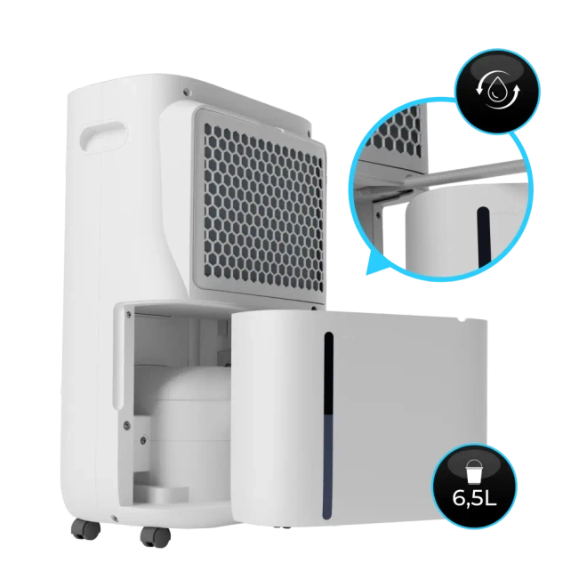 - ✔️ Pojemny zbiornik 6,5 l z opcją stałego odpływu – wygodne korzystanie bez konieczności częstego opróżniania.