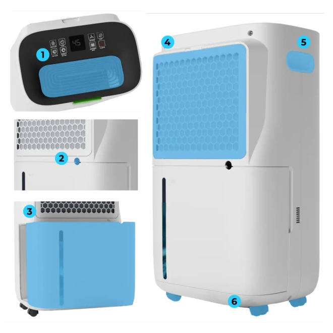 - ✔️ Dwa urządzenia w jednym – oczyszczacz i osuszacz powietrza 2w1, które oszczędzają miejsce i gwarantują podwójną funkcjonalność.