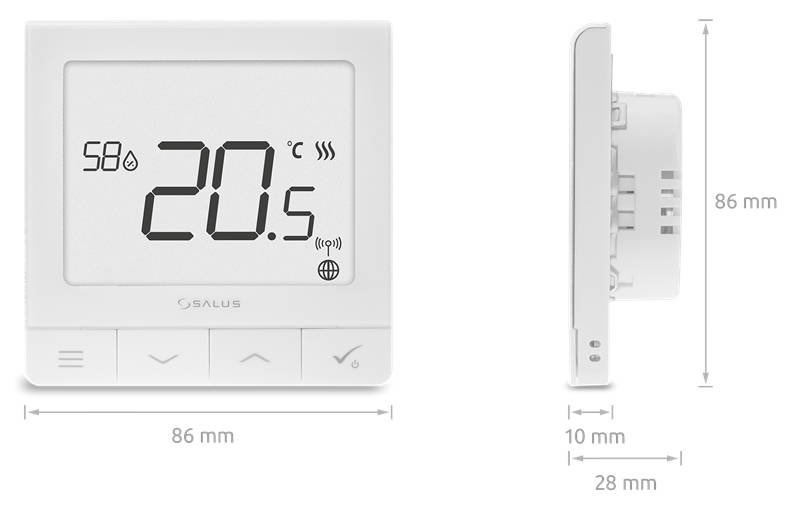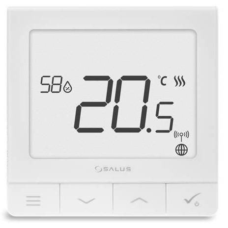 Podtynkowy, wielofunkcyjny regulator temperatury z czujnikiem wilgotności. Wyjątkową cechą tego regulatora jest możliwość sterowania BEZPRZEWODOWEGO urządzeniami serii SALUS Smart Home oraz sterowania PRZEWODOWEGO urządzeniami, które podpina się bezpośrednio do niego (np. przewodowa listwa sterująca, kocioł).