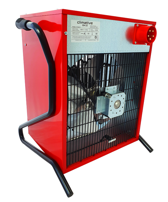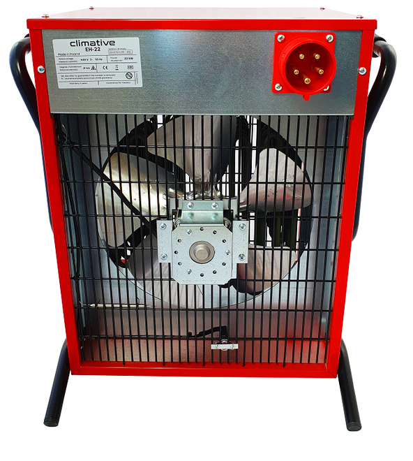 - Przemysłowy grzejnik elektryczny o mocy 22 kW do ogrzewania hal, magazynów i warsztatów. Regulacja termostatem, przepływ 2400 m³/h, solidna stalowa obudowa, szybkie i równomierne ogrzewanie powierzchni do 220 m².