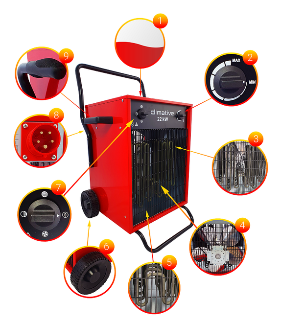 Nagrzewnice elektryczne Climative są objęte 3-letnią gwarancją. Obowiązuje ona również przedsiębiorców. Jesteśmy pewni wysokiej jakości naszych urządzeń, dlatego okres ochronny został wydłużony do 36 miesięcy.Nagrzewnica elektryczna Climative EH-22 mobile