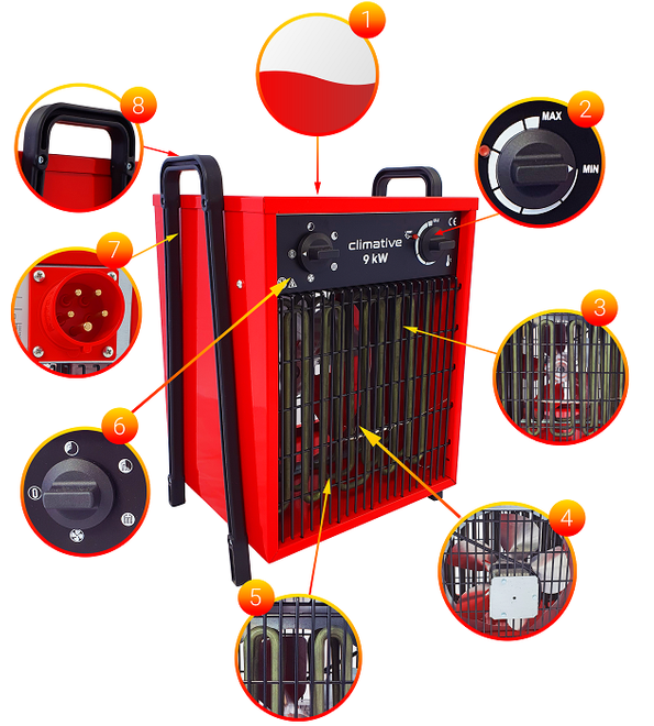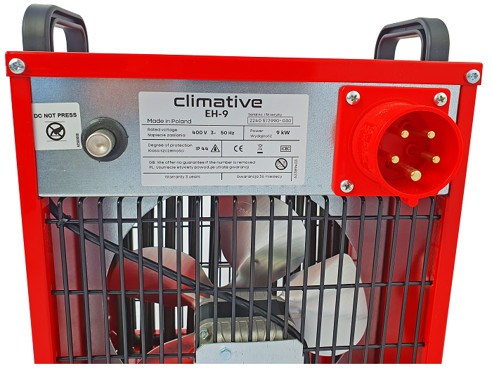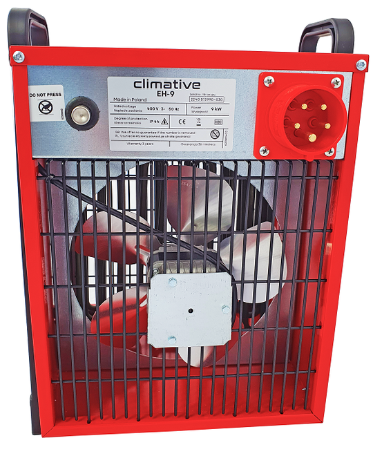 - Polska nagrzewnica elektryczna Climative EH-9 to efektywne źródło ciepła. Moc 9kW, zasilanie 400V, termostat i IP44. Idealna do ogrzewania hal, magazynów, warsztatów. Szybkie i równomierne rozprowadzanie ciepła. Trwała konstrukcja.