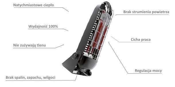 Promienniki elektryczne tego typu wyposażone są w liczne udogodnienia, mające również znaczący wpływ na bezpieczeństwo użytkowania. Posiadają system chroniący przed przegrzaniem. Co więcej, ich kompaktowa konstrukcja, oraz wytrzymała obudowa sprawiają, że promiennik może być użytkowany wszędzie tam gdzie jest najbardziej potrzebny.