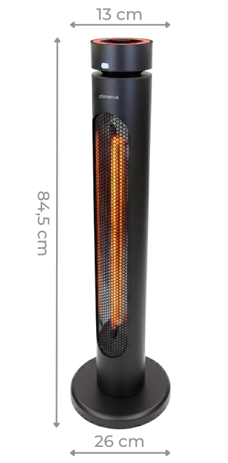 🟦 Automatyczny wyłącznik – w przypadku przewrócenia się urządzenia promiennik natychmiast odcina zasilanie, zapobiegając niebezpiecznym sytuacjom
