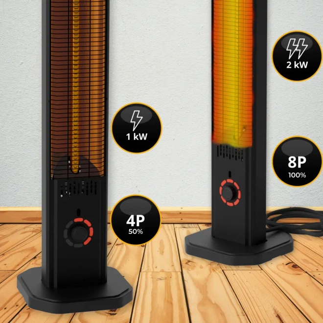 ✔️ 2000 W mocy i żarnik węglowy – błyskawiczne ciepło już po kilku sekundach od uruchomienia.