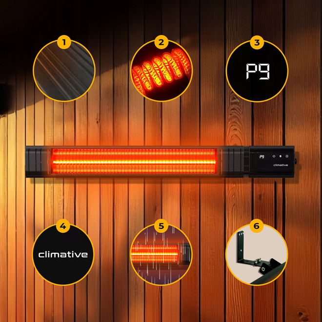 Promienniki podczerwieni Climative objęte są 24-miesięczną gwarancją (12 miesięcy dla firm). W ramach usługi door-to-door urządzenie można wysłać do autoryzowanego serwisu na koszt producenta, a po naprawie zostanie ono odesłane bezpośrednio do klienta.