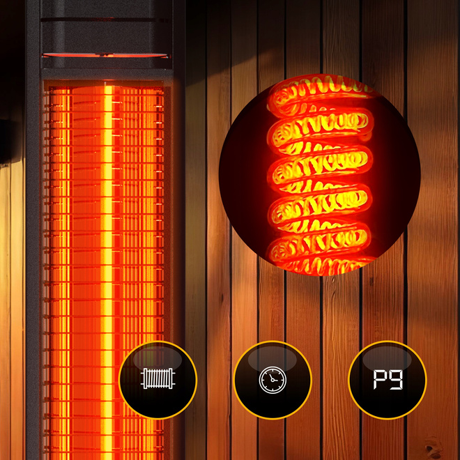 Promiennik podczerwieni Climative IRH-25 RAY charakteryzuje się wyjątkowym zasięgiem grzewczym wynoszącym aż 5 metrów. Dzięki temu urządzenie efektywnie ogrzewa elementy i osoby znajdujące się w promieniu jego działania. Jest to doskonałe rozwiązanie dla dużych pomieszczeń, tarasów, altan, czy nawet przestrzeni zewnętrznych. Taki zasięg umożliwia ogrzanie większej powierzchni przy pomocy jednego urządzenia, co obniża koszty zakupu i eksploatacji dodatkowych jednostek grzewczych.