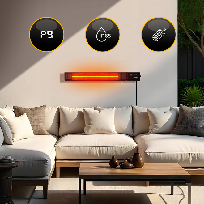 Urządzenie oferuje trzy metody sterowania: 1. Manualne – poprzez wbudowany panel sterowania, który umożliwia bezpośrednią zmianę ustawień. 2. Pilot zdalnego sterowania – pozwala na wygodne regulowanie parametrów z odległości. 3. Sterowanie Wi-Fi – istnieje opcja podłączenia urządzenia do zewnętrznego sterownika Wi-Fi, co umożliwia kontrolowanie promiennika za pomocą aplikacji mobilnej. To rozwiązanie zapewnia większą elastyczność i komfort użytkowania.