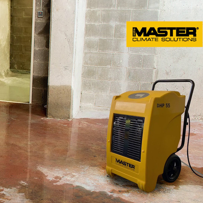 • Osuszacz powietrza Master DHP 55 – wydajność 45,9 l/24h, pompa wody, higrostat, panel elektroniczny i duże koła. Gotowy do pracy w budownictwie, archiwach, magazynach i po zalaniach. Profesjonalne osuszanie z 3-letnią gwarancją!