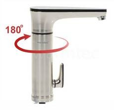 Kran w podgrzewaczu przepływowym regulowany w zakresie 0-180 stopni zapewnia wygodny dostęp do ciepłej wody. Bezpieczeństwo użytkowania zapewnia grzałka ze stali nierdzewnej odporna na przepalenia, ochrona przed przegrzaniem, wyciekiem wody i ochrona grzałki. TapFlow+ posiada najwyższą klasę efektywności energetycznej A. Podłączenie do prądu za pomocą przewodu z wtyczką (w zestawie).