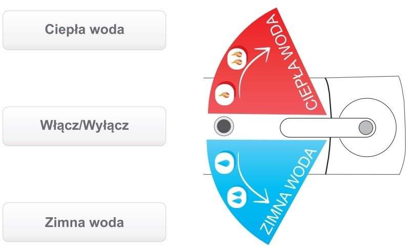 • Wygodny przełącznik kontrolujący przepływ ciepłej i zimnej wody