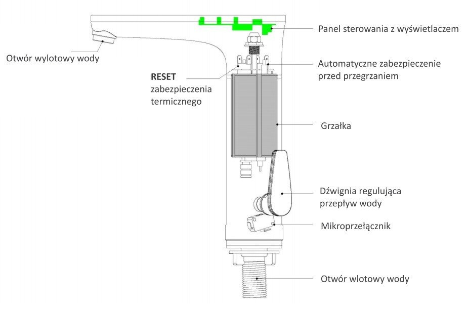 Charakterystyka Warmtec TapFlow+ 3,3 kW LCD