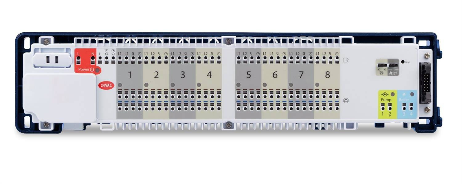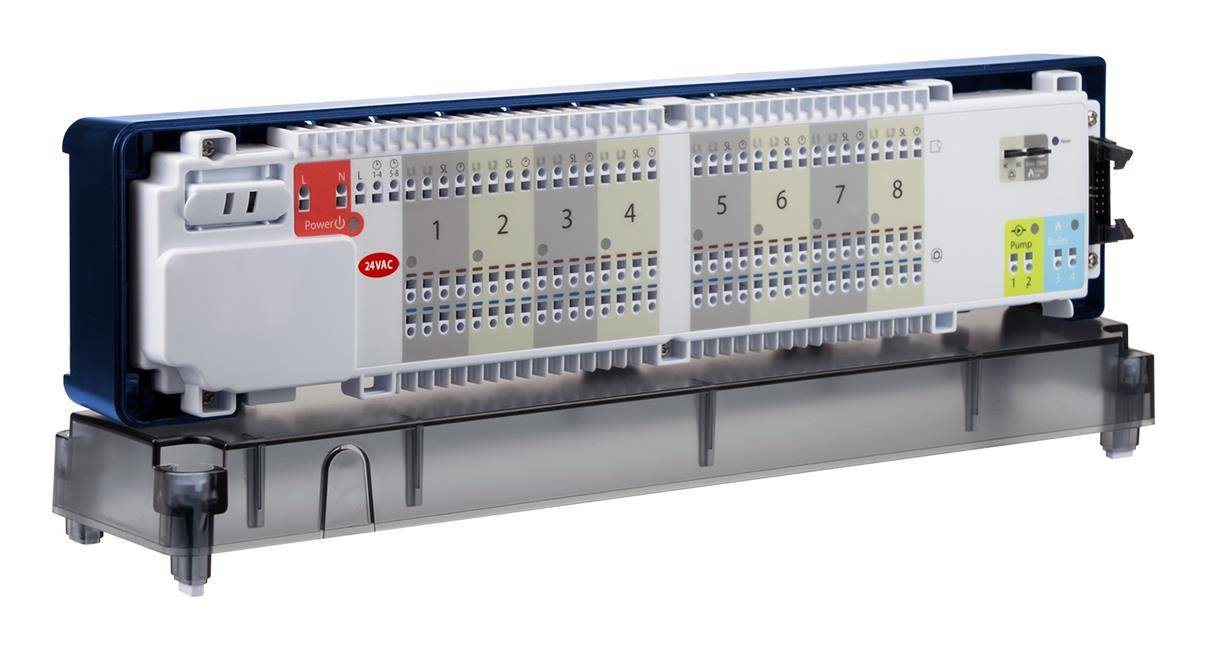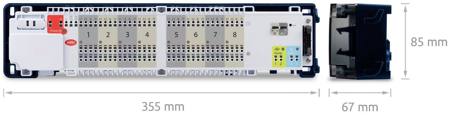Listwa umożliwia łatwe i szybkie podłączenie przewodowych regulatorów temperatury oraz siłowników metodą PLUG-IN. Posiada zintegrowany moduł sterowania pompą i kotłem oraz zabezpieczenie przed przeciążeniem. Listwa przystosowana jest do pracy z siłownikami typu NC (bezprądowo zamkniętymi) i NO (bezprądowo otwartymi).