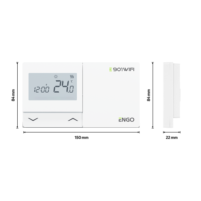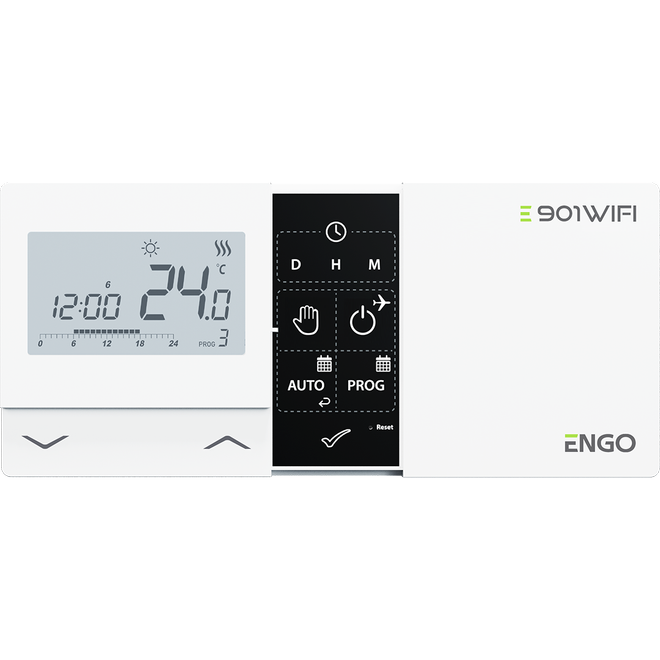 E901WIFI to regulator Wi-Fi, który umożliwia ekonomiczne i ekologiczne sterowanie każdym rodzajem ogrzewania. Charakteryzuje się przejrzystym menu oraz mnogością przydatnych funkcji. Obsługa regulatora jest bardzo prosta i pozwala dostosować cykl pracy ogrzewania do rytmu dnia użytkowników. Wbudowany moduł WiFi (w odbiorniku) umożliwia zdalną kontrolę systemu grzewczego za pomocą smartfonu lub tabletu przy użyciu aplikacji ENGO Smart / TUYA Smart.