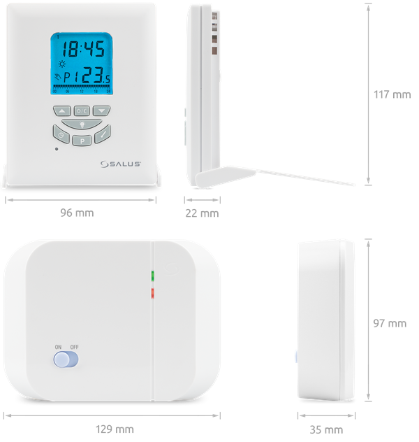 Wymiary [mm]: nadajnik 96 x 117 x 22, odbiornik 129 x 100 x 35 |