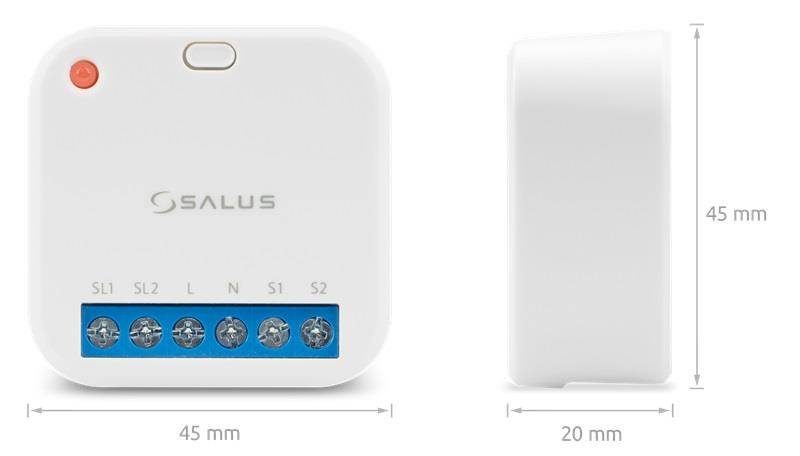 RS600 steruje napędami rolet okiennych, zasłon lub oświetleniem o maksymalnym obciążeniu 5A. Urządzenie fabrycznie jest przygotowane do sterowania napędami 230V AC. W RS600 można zaprogramować specjalne tryby pracy za pomocą aplikacji SALUS Smart Home, wówczas należy połączyć go z bramką internetową UGE600. Może współpracować z różnymi typami wyłączników.