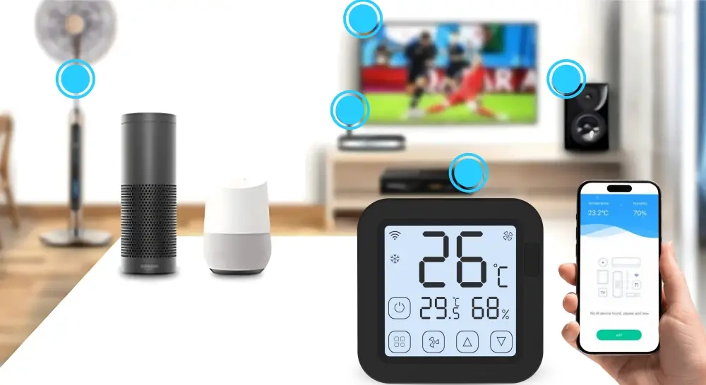 AC-S16 PRO wyposażony został w zaawansowane czujniki temperatury i wilgotności, które działają w czasie rzeczywistym. Co więcej, dane są zapisywane w aplikacji i mogą być wykorzystywane do: Dzięki temu klimatyzator, osuszacz czy oczyszczacz mogą uruchomić się automatycznie – dokładnie wtedy, kiedy są potrzebne. Chociaż sterownik został zaprojektowany głównie z myślą o klimatyzatorach, działa doskonale także z: Funkcja DIY Learn pozwala uczyć sterownik komend z dowolnego pilota, nawet jeśli Twój model nie znajduje się w bazie Tuya. Przypisujesz każdą funkcję ręcznie, dopasowując ją do układu przycisków na ekranie lub aplikacji. Dzięki temu urządzenie staje się uniwersalnym centrum sterowania.