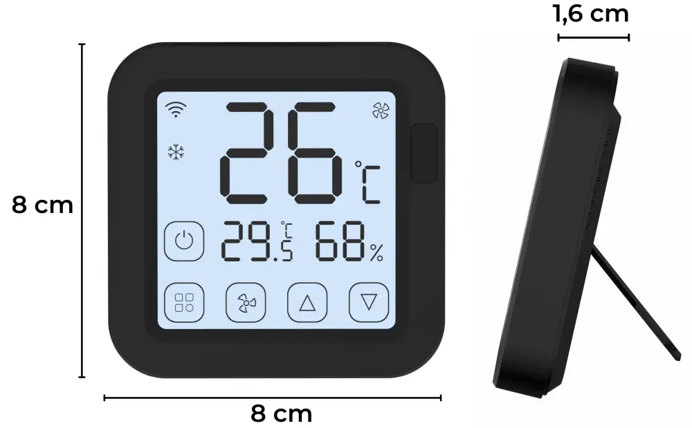 - AC-S16 PRO to inteligentny pilot WiFi z dotykowym ekranem i Bluetooth. Twórz sceny w Tuya, steruj głosem, monitoruj temperaturę i wilgotność.
