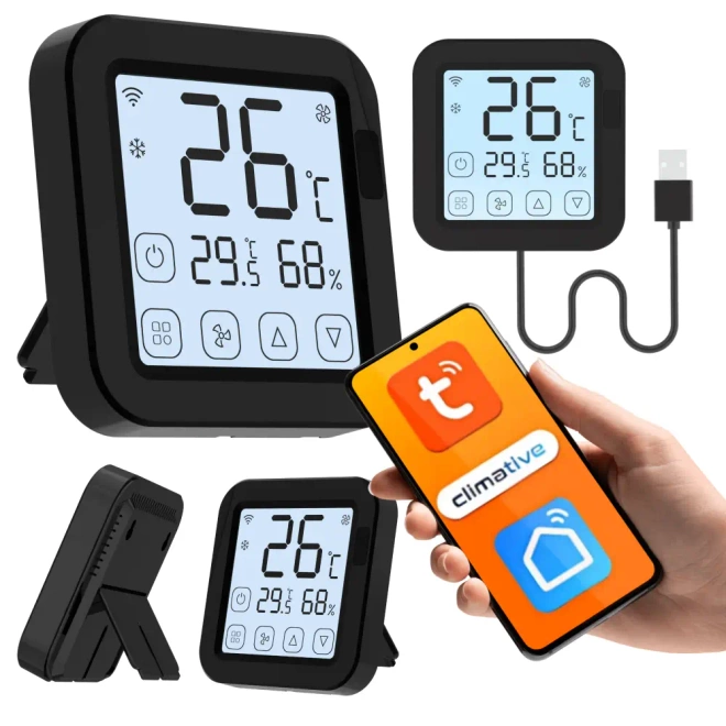 Przedstawiamy Climative AC-S16 PRO – najnowszy sterownik IR, który łączy elegancki design z potężnymi możliwościami automatyzacji. Ten czarny, kompaktowy kontroler został stworzony dla użytkowników, którzy chcą połączyć tradycyjne urządzenia IR z ekosystemem smart home bez wymiany sprzętu i bez kompromisów. Dzięki ekranowi dotykowemu, łączności Wi-Fi i Bluetooth, czujnikom klimatu oraz pełnej integracji z systemami Tuya, Smart Life, Alexa i Google, AC-S16 PRO stanie się kluczowym elementem nowoczesnego mieszkania, biura lub studia.
