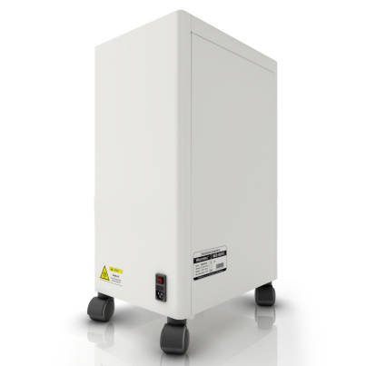 W odróżnieniu od dostępnych na rynku przepływowych sterylizatorów powietrza w swojej konstrukcji zastosowaliśmy wydajny silnik o właściwościach turbiny, który wciąga powietrze ze znacznie większą skutecznością niż sterylizatory opierające swoją budowę o zwykłe wentylatory.