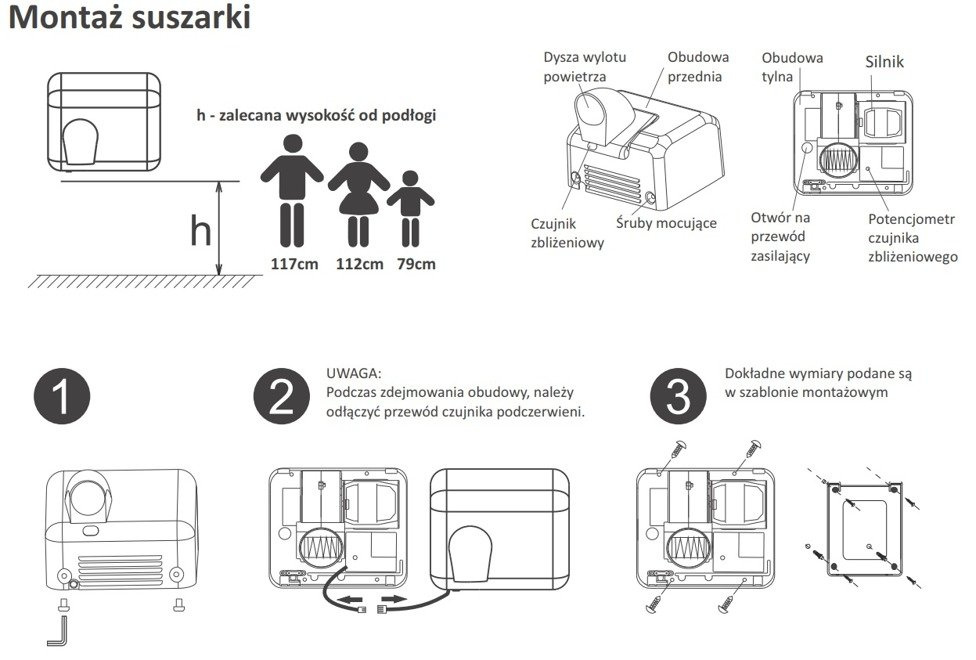• Warmtec BarrelFlow ABS Biała – suszarka do rąk o mocy 2500 W, bezdotykowa obsługa, czas suszenia 15 s i nowoczesny design. Trwała obudowa z ABS, Atest PZH, gwarancja door-to-door 36 miesięcy.