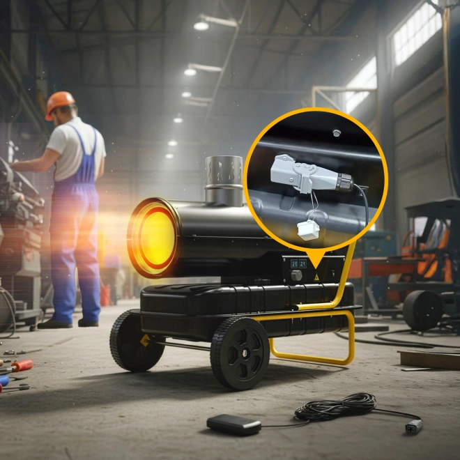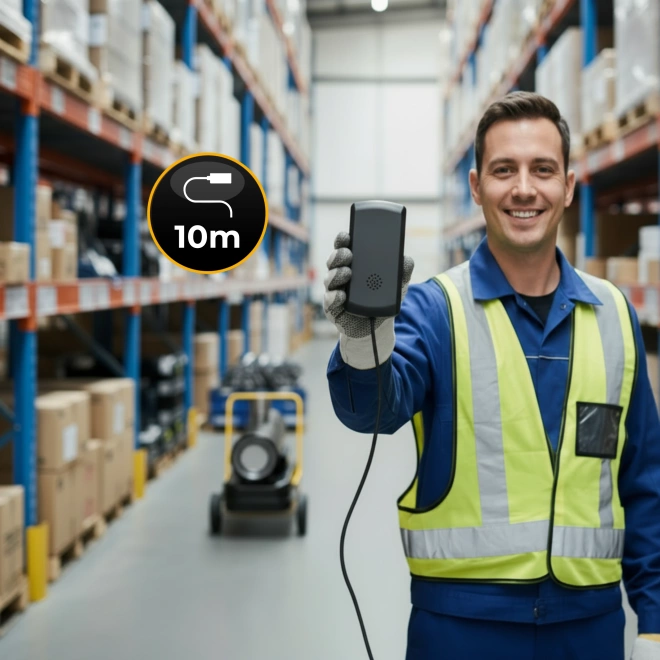 🔵 Zastosowanie – pozwala kontrolować temperaturę dokładnie tam, gdzie przebywa użytkownik, nawet jeśli nagrzewnica znajduje się w innej części hali, magazynu lub garażu.
