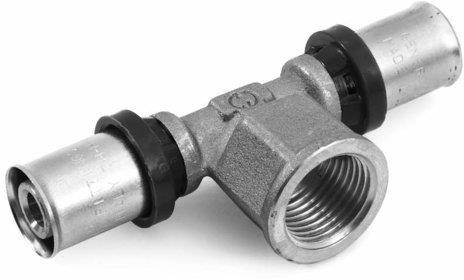 System rurowy CLEVERFIT-łączniki zaprasowywanemosiężne: Trójnik PURMO CLEVERFIT, odejście z gwintem wewnętrznym 32x1" GWx32