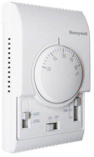 3-stopniowy przełącznik zmiany biegów i termometr pomieszczenia do nagrzewnic. Elementy automatyki dla kurtyn i kurtyno-nagrzewnic ELiS. Termostat pomieszczeniowy z wbudowanym trójstopniowym przełącznikiem zmiany biegów umożliwia wybór jednego z trzech biegów wentylatorów oraz pozwala na sterowanie siłownikiem zaworu w zależności od temperatury otoczenia. W przypadku obniżenia temperatury poniżej zadanej przez użytkownika zawór z czynnikiem się otwiera, a po jej osiągnięciu zamyka. Ponieważ częścią składową termostatu jest czujnik temperatury, należy zamontować go w takim miejscu pomieszczenia, aby nie był narażony na wpływ czynników, które mogłyby zaburzyć jej pomiar (np. promieniowanie słoneczne).zakres nastawy temp.: od +10 do +30°C zakres temp. pracy: od 0 do +40°C stopień ochrony: IP30 max. obciążenie: 4 (2) A sposób montażu: natynkowy