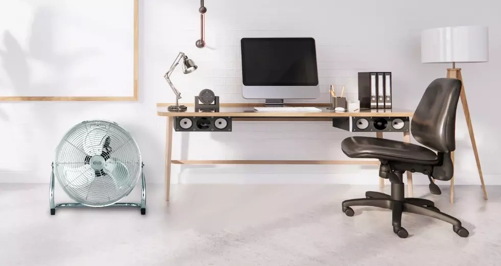 - Stylowy design, solidna struktura, antypoślizgowe nóżki Wykonany z metalu pokrytego chromem Aluminiowe łopatki o średnicy 40cm.