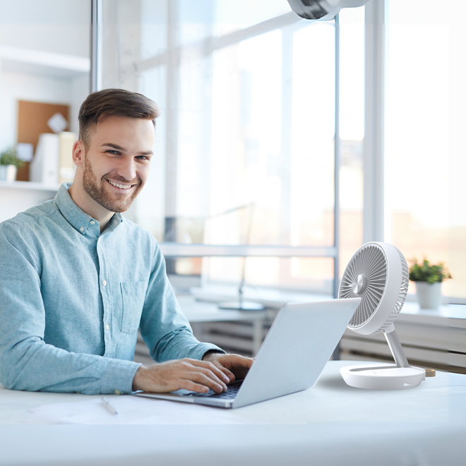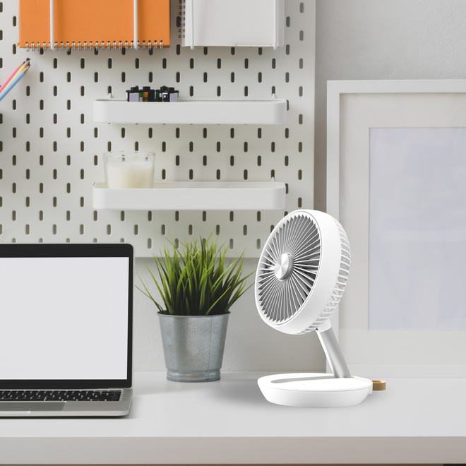- FlexiGO – cichy, składany wentylator USB z akumulatorem do 15h pracy. 4 tryby nawiewu, oscylacja, regulacja wysokości. Idealny do biura, domu i na wyjazdy.