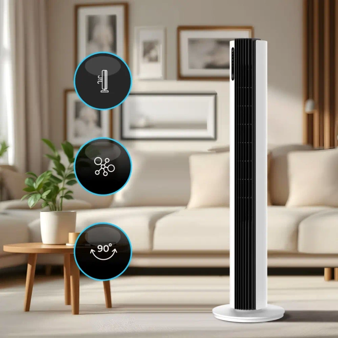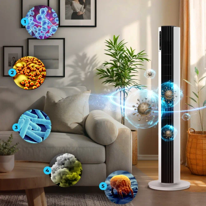 Wentylator kolumnowy Pure Air Plasma to nowoczesne urządzenie, które łączy w sobie zaawansowaną technologię sterylizacji plazmowej z eleganckim designem. Dzięki 12 poziomom prędkości i funkcji oscylacji o zakresie 90°, zapewnia optymalne chłodzenie i cyrkulację powietrza, co czyni go niezastąpionym w upalne dni. Urządzenie oferuje trzy tryby pracy: normalny, naturalny i snu, co pozwala na dostosowanie działania do indywidualnych potrzeb użytkownika. Dodatkowo, wspomniana już funkcja sterylizacji plazmowej gwarantuje przestrzeń wolną od szkodliwych drobnoustrojów, zapewniając czyste i zdrowe powietrze w Twoim domu.