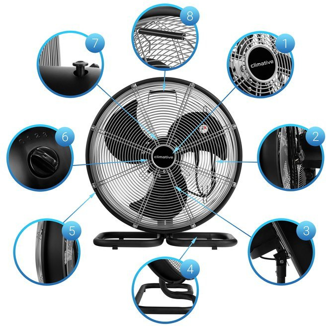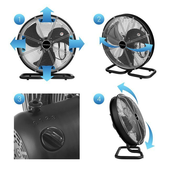 Wentylator osiowy Climative Tornado 3B pozwala w krótkim czasie wytworzyć silny strumień powietrza. Wysoki przepływ powietrza (6300 m³/h) pozwala stosować go w przemysłowych warunkach. Sporym udogodnieniem jest metalowy pierścień, który skutecznie zabezpiecza urządzenie. Wentylator jest niezwykle wytrzymały i odporny na uszkodzenia. W połączeniu z industrialnym wyglądem sprawia to, że sprawdzi się w warunkach przemysłowych. Wymagający użytkownicy z powodzeniem mogą go stosować także w warunkach domowych. Zastosowana funkcja oscylacji sprawia, że wentylator będzie oddziaływał równomiernie na całe pomieszczenie. Dodatkowo możliwość pochylenia wentylatora pozwala uzyskać spore kąty nawiewu.